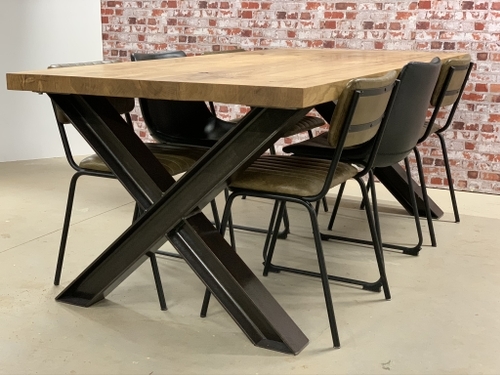 Ons Oslo tafelonderstel (3d kruispoot) gemaakt uit zware stalen kokers van 8 x 8 cm breed, geven uw tafel een echt industrieel karakter. De gebruikte stalen kokers kruisen elkaar waardoor de populaire X vorm ontstaat. De zichtbare lassen geven het tafelonderstel een extra stoer en robuust karakter, echt industrieel!